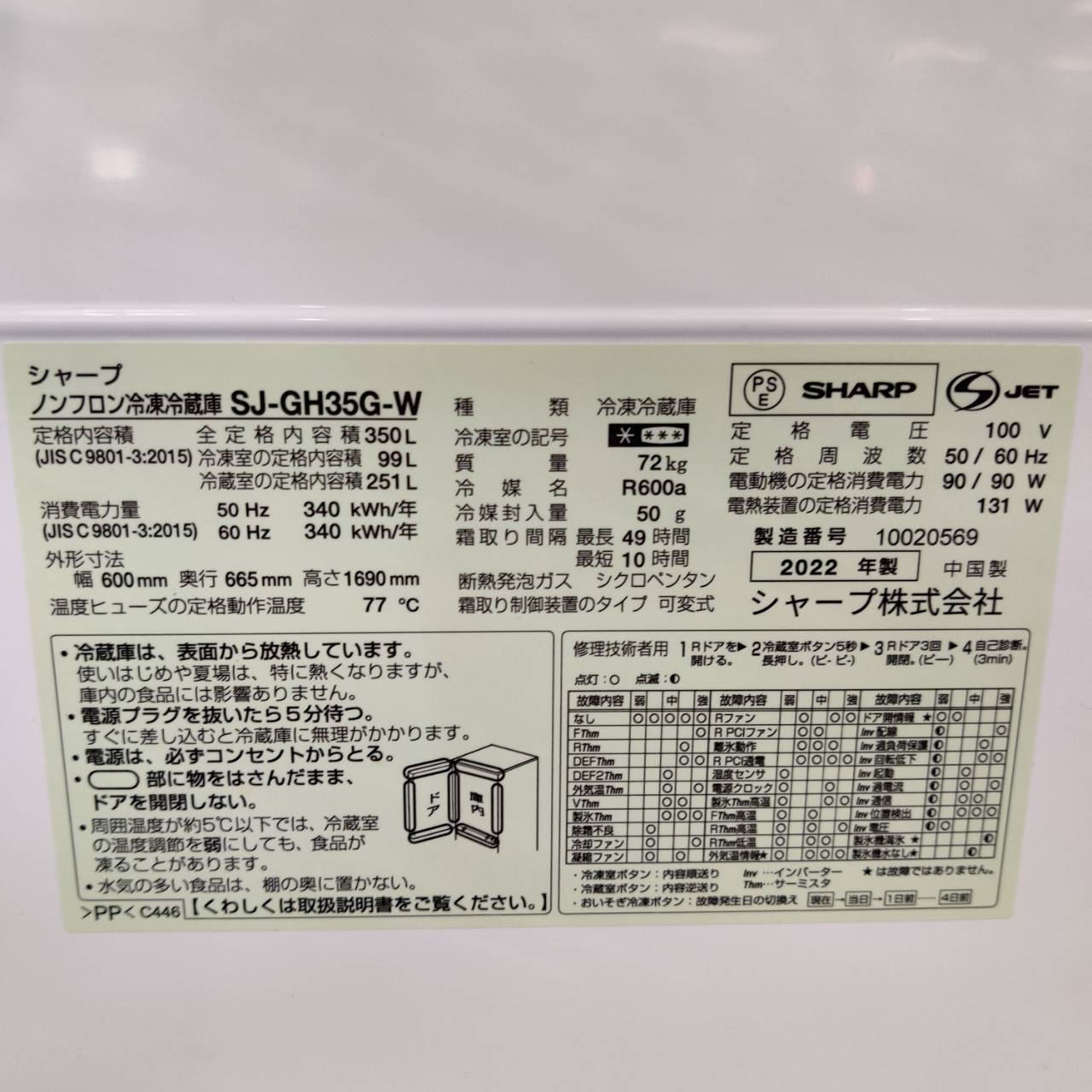 SHARP シャープ 2022年製 350L 3ドア 冷凍冷蔵庫 SJ-GH35G 販売中! 愛品倶楽部柏店