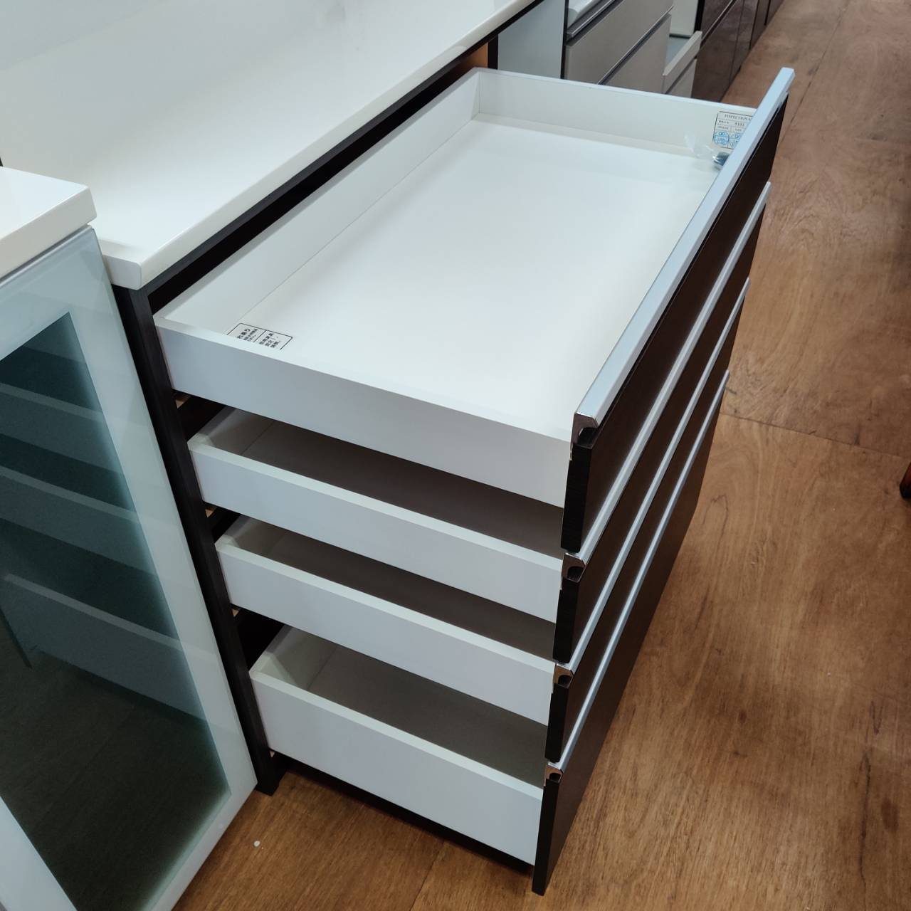 奥まで取り出しやすいフルオープンタイプで、耐久性の高い底受け構造がしっかり支えます。