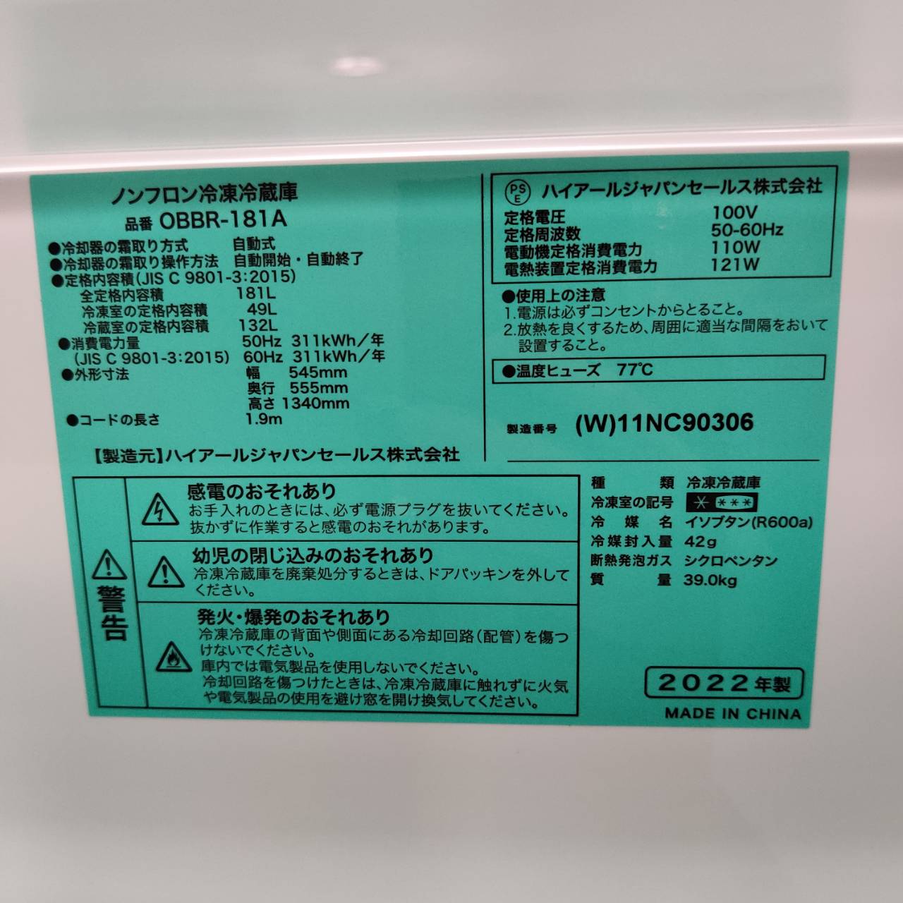 Haier ハイアール 2022年製 181L 2ドア 冷凍冷蔵庫 OBBR-181A 販売中! 愛品倶楽部柏店