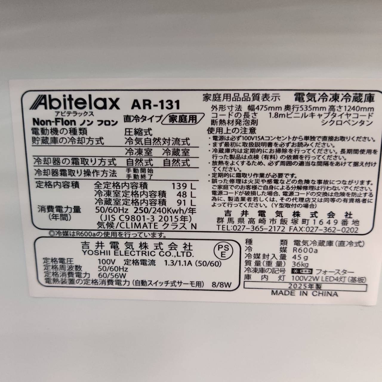 商品名 : 139L 2ドア 直冷式 冷凍冷蔵庫