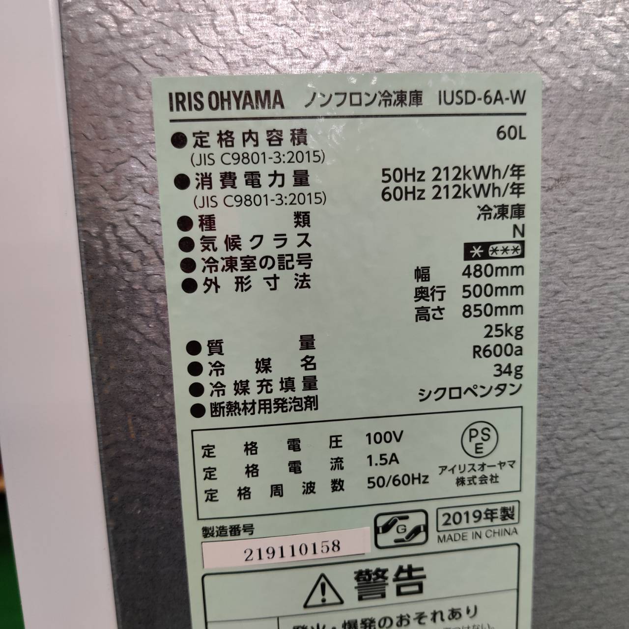 アイリスオーヤマ 2019年製 60L 3段 冷凍庫 IUSD-6A-W 販売中! 愛品倶楽部柏店
