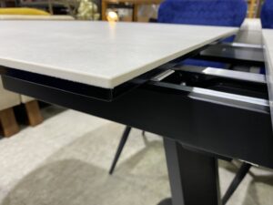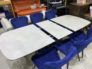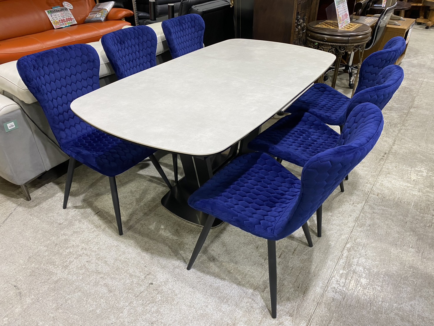 当店では珍しい自動伸長式の天板で、熱や傷に強いセラミックの天板のダイニング7点セット。