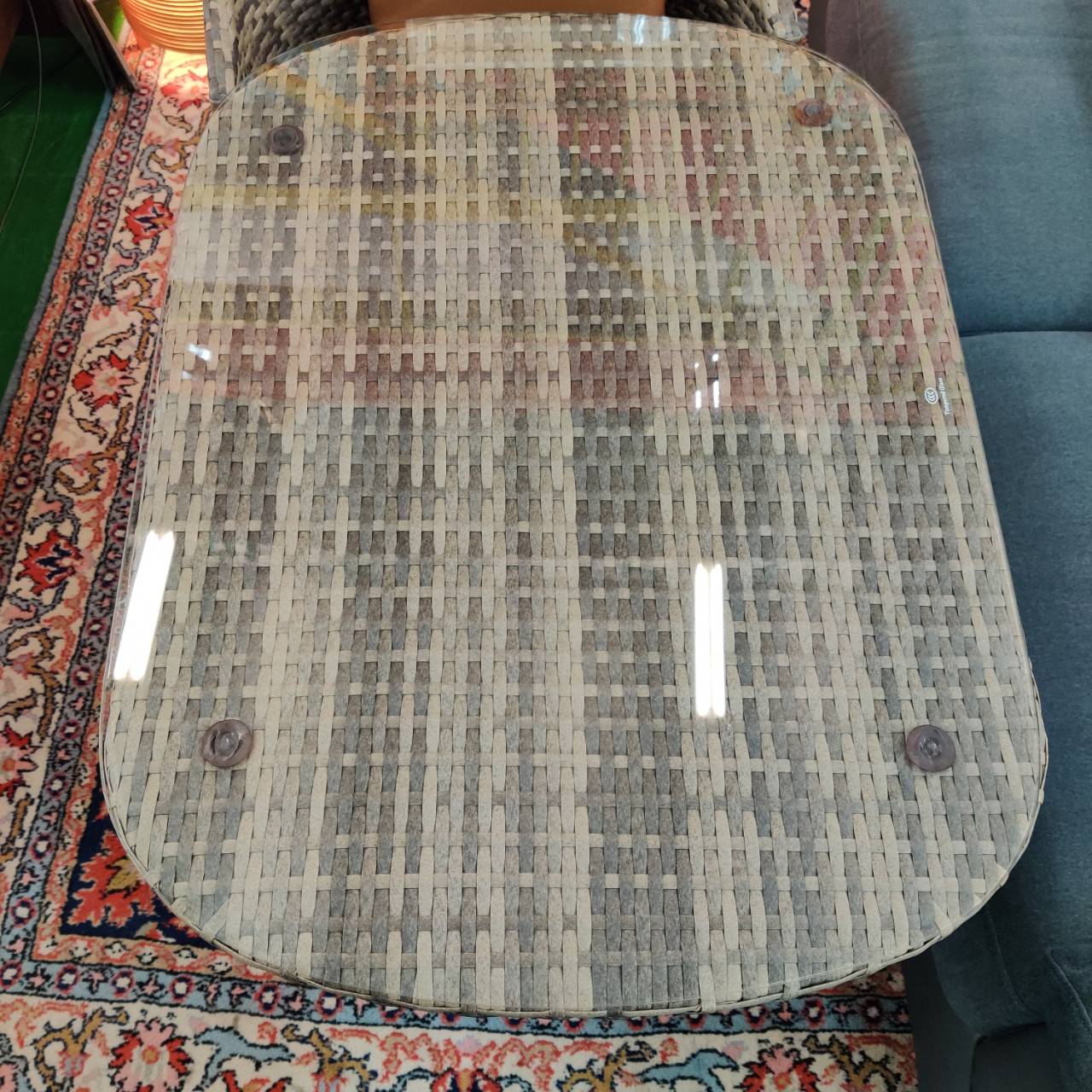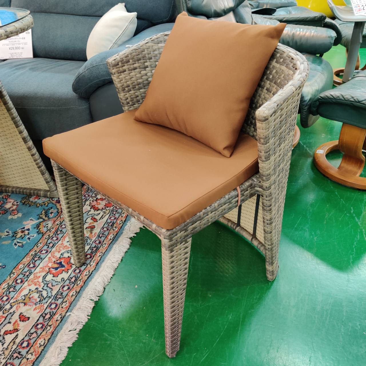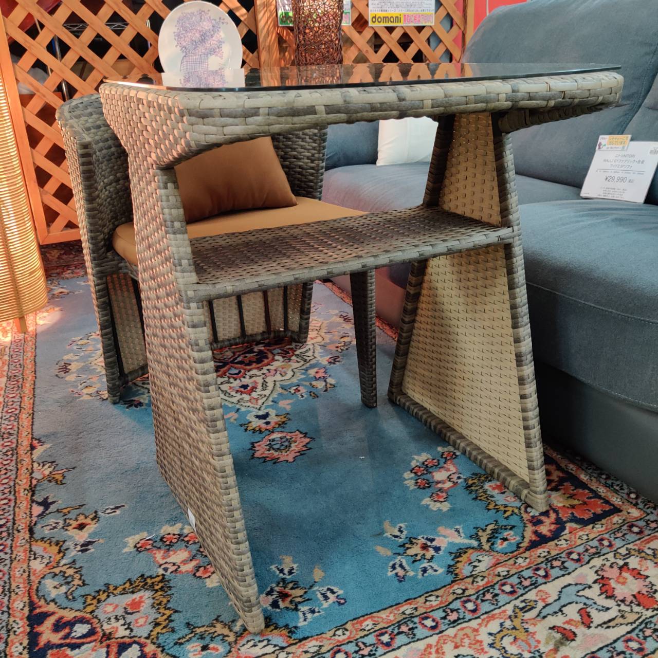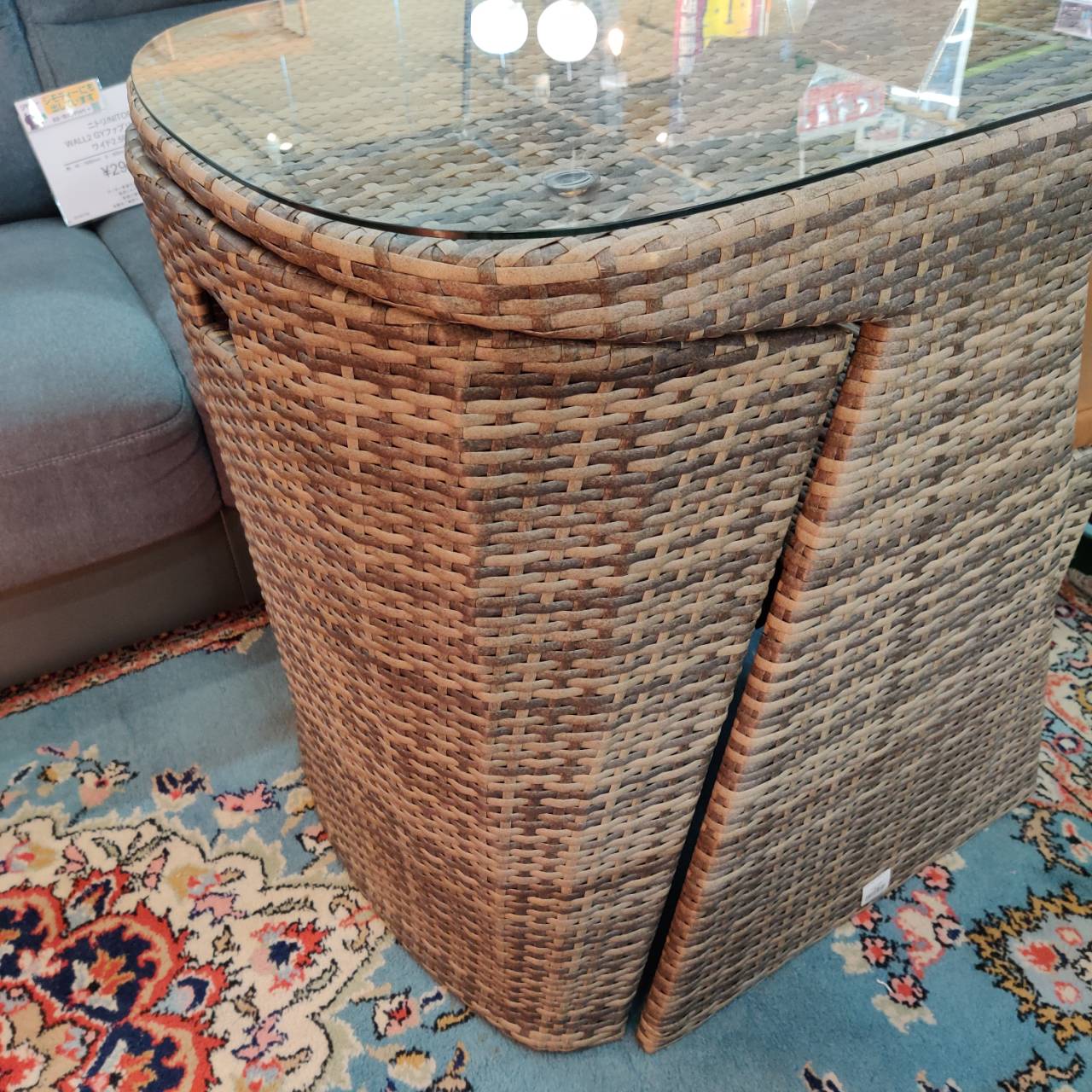 素材は高級感のあるラタン調で、PEラタンならではの自然な風合いが魅力。水や汚れに強いので、飲み物をこぼしてもサッと拭くだけでOKです。