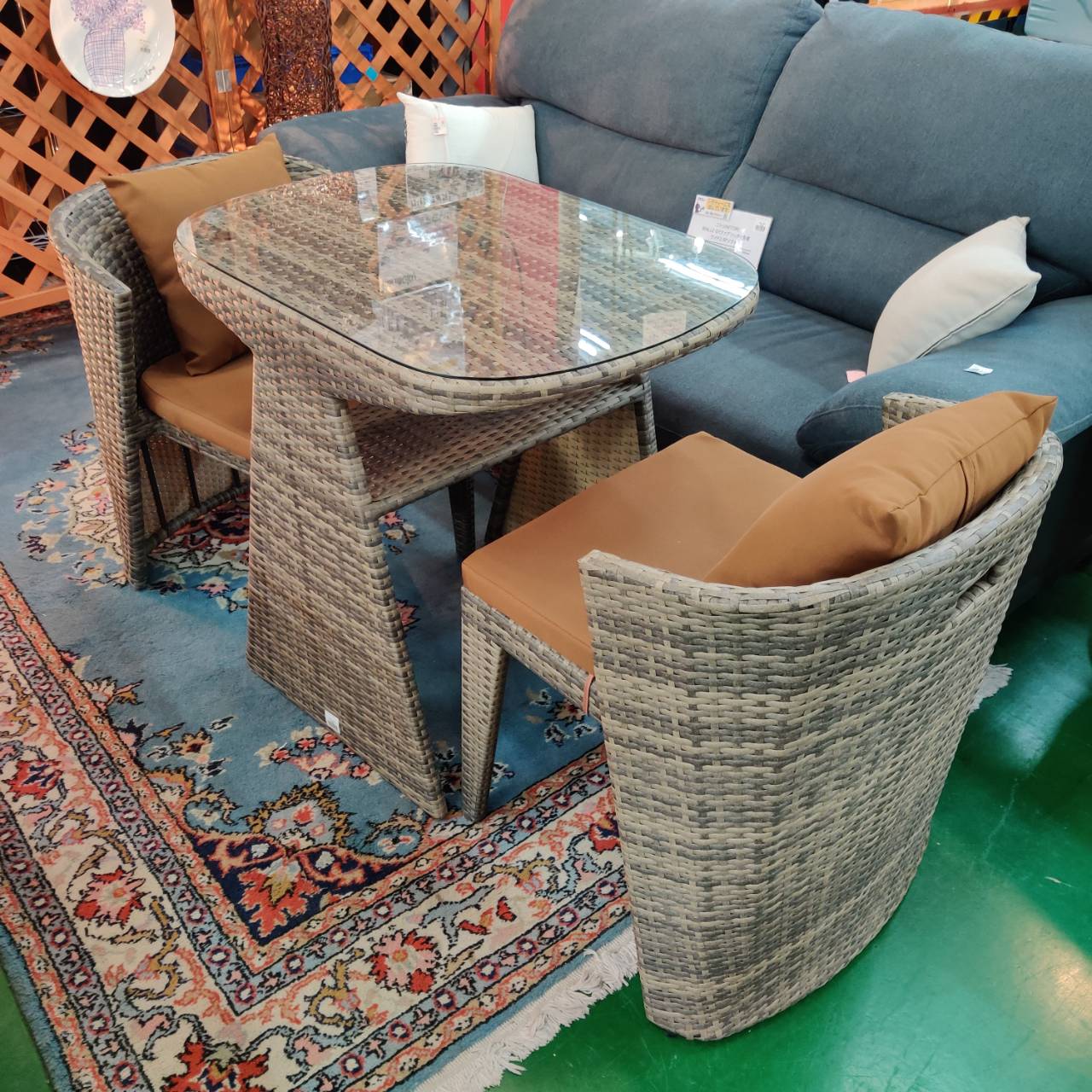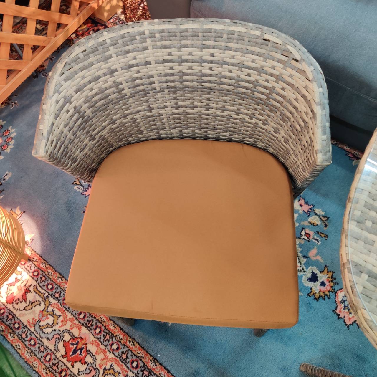 このガーデンテーブルセットは、クッション性と耐久性をそなえた人工ラタンを使っているから、雨や紫外線にも強くて屋外でも安心して使えます。