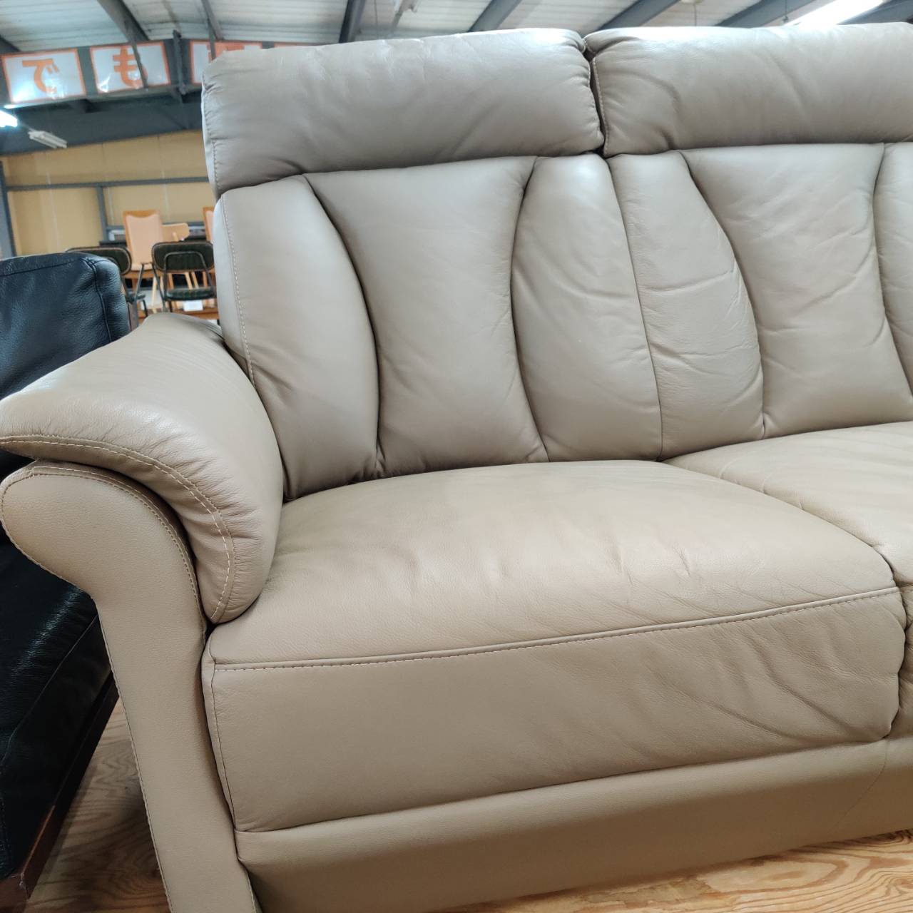 こちらは 一部本革仕様の3人掛けハイバックソファ です!