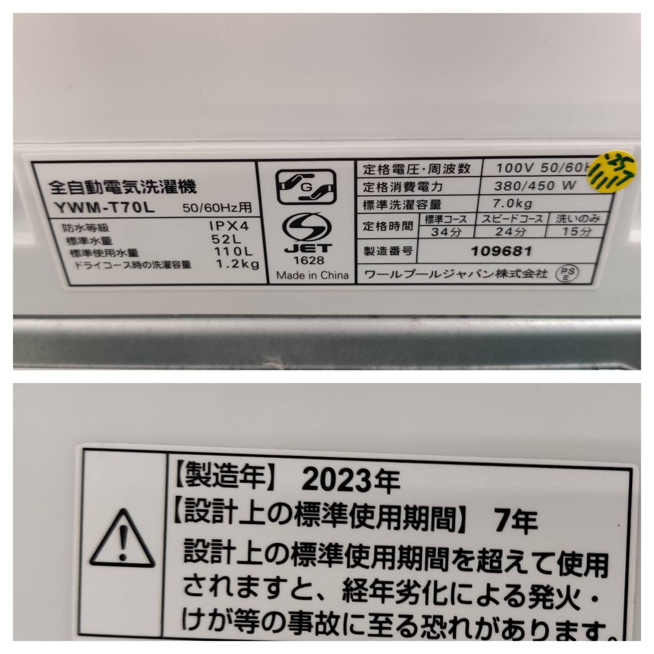YAMADA ヤマダ 2023年製 7.0kg 全自動洗濯機 YWM-T70L 販売中! 愛品倶楽部柏店