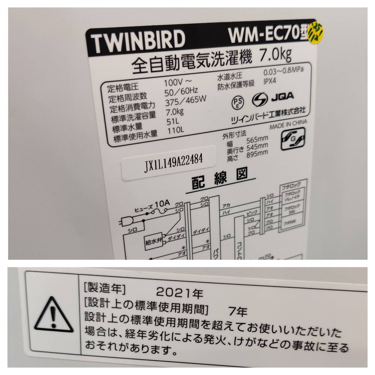 商品名 : 7.0kg 全自動洗濯機