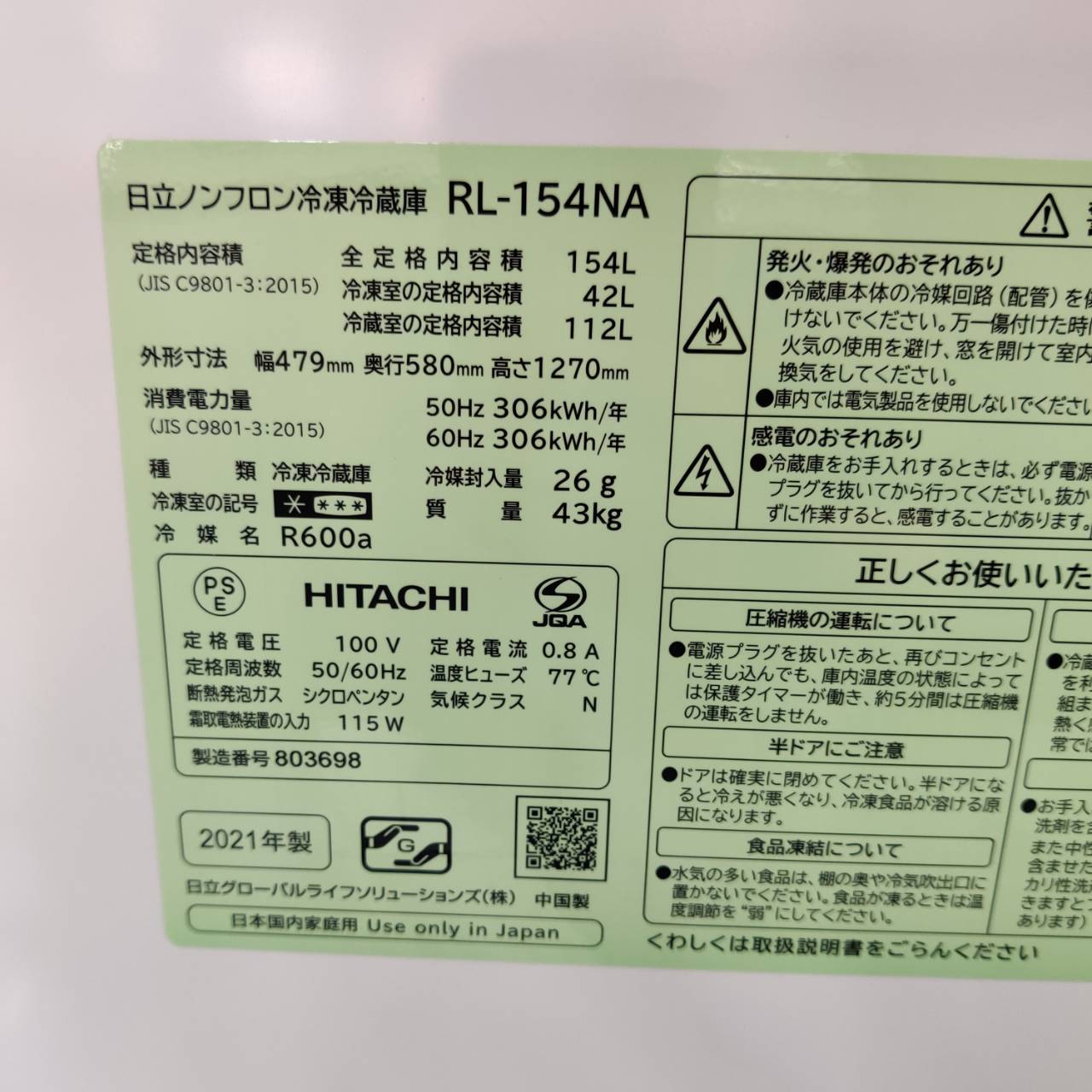 日立-HITACHI_2021年製_154L-2ドア-冷凍冷蔵庫_RL-154NA_143018527002-2
