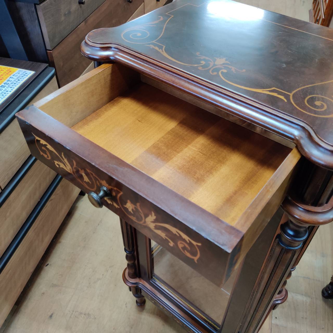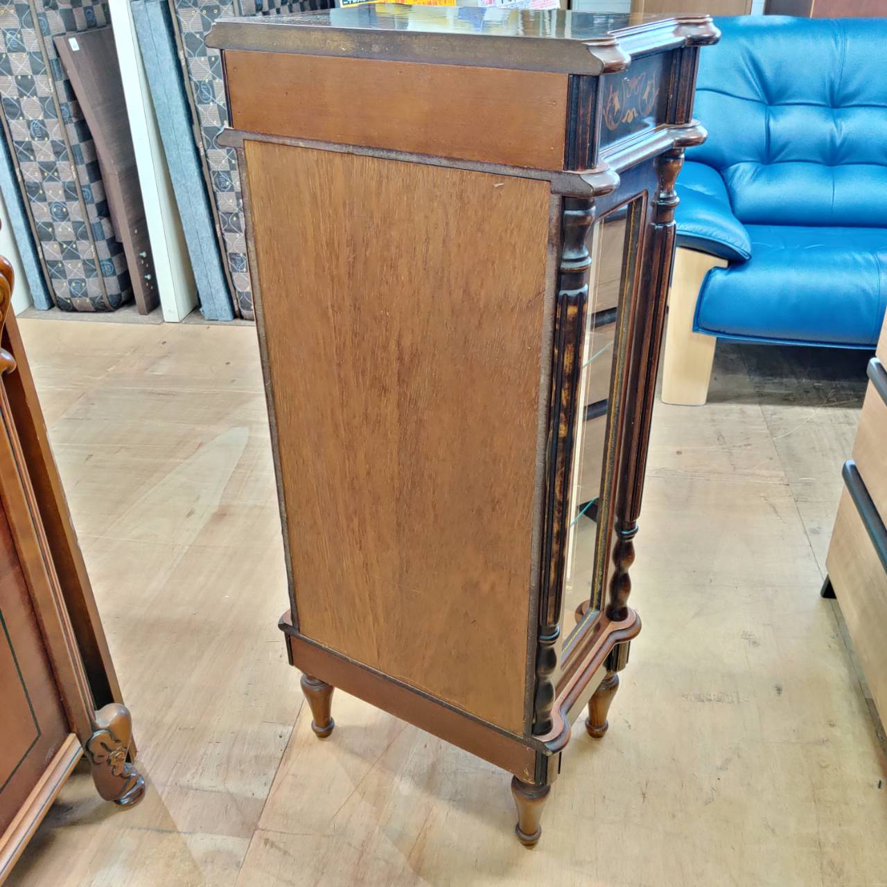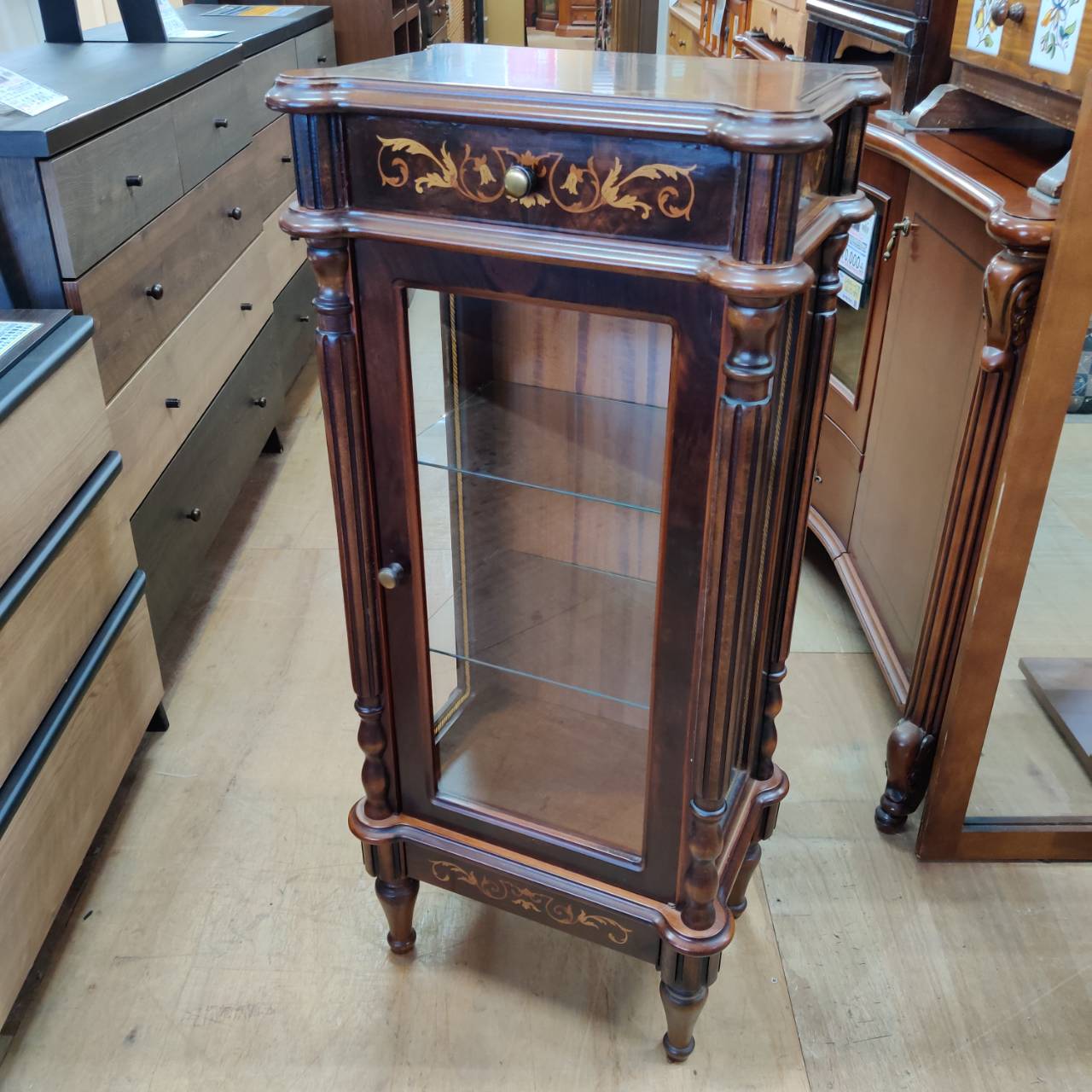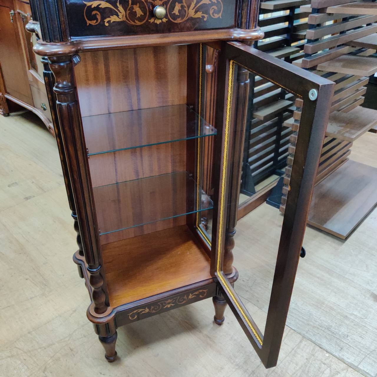 商品名 : スリムガラスキャビネット 木象嵌細工 引出し付