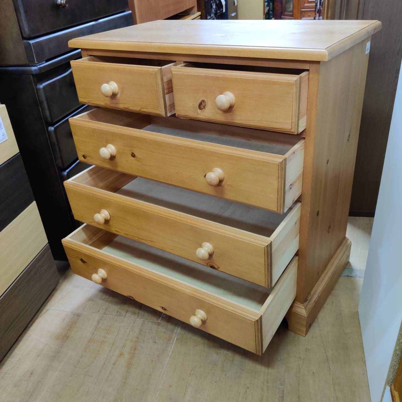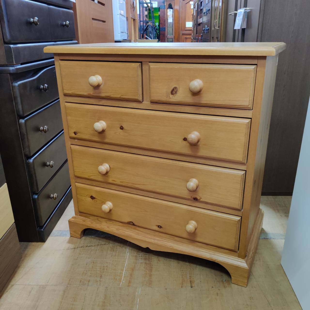 小物をサッとしまえる上段の小さめ引き出しと、衣類やタオルをしっかり収納できる大きめ引き出しが合計5杯。
