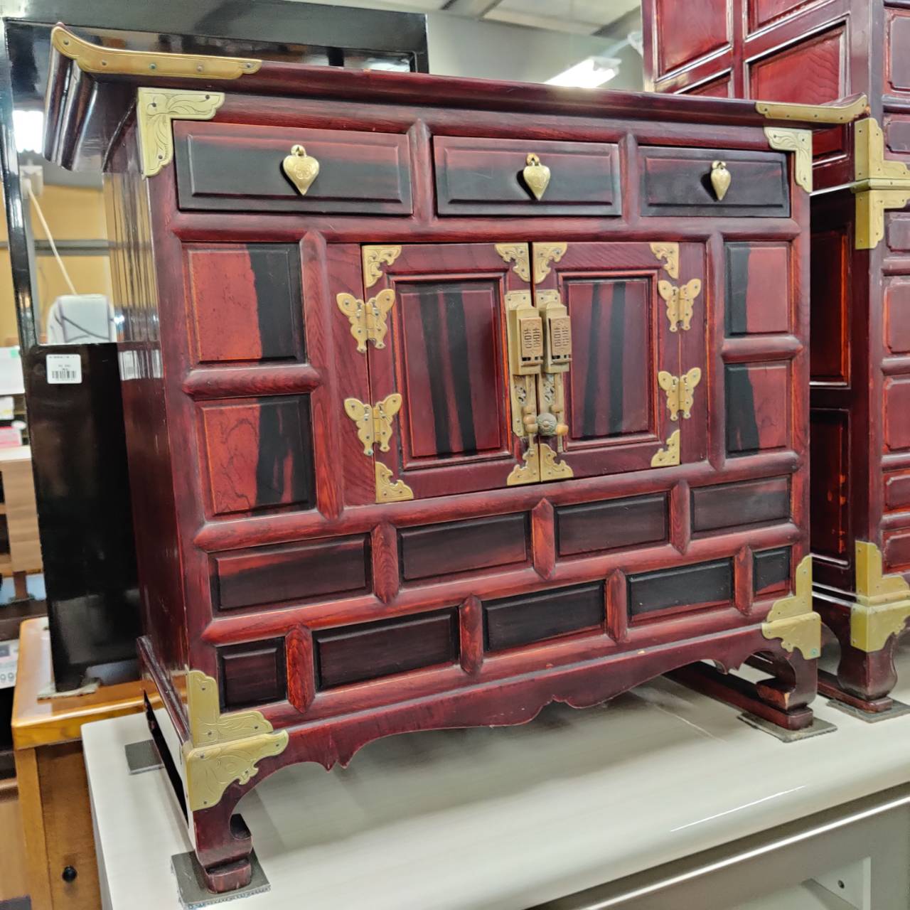 このキャビネットは、韓国で作られた“タンススタイル”の木製収納家具です。
