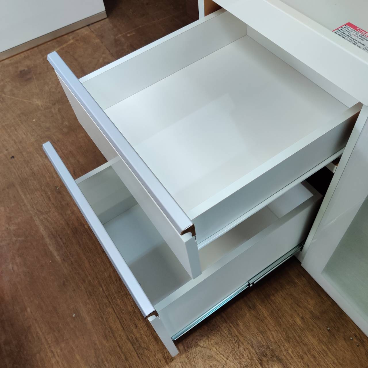 下の引き出しはフルオープン式だから、奥までしっかり引き出せて、大きな調理器具やまとめ買いした食材もラクに収納できます。