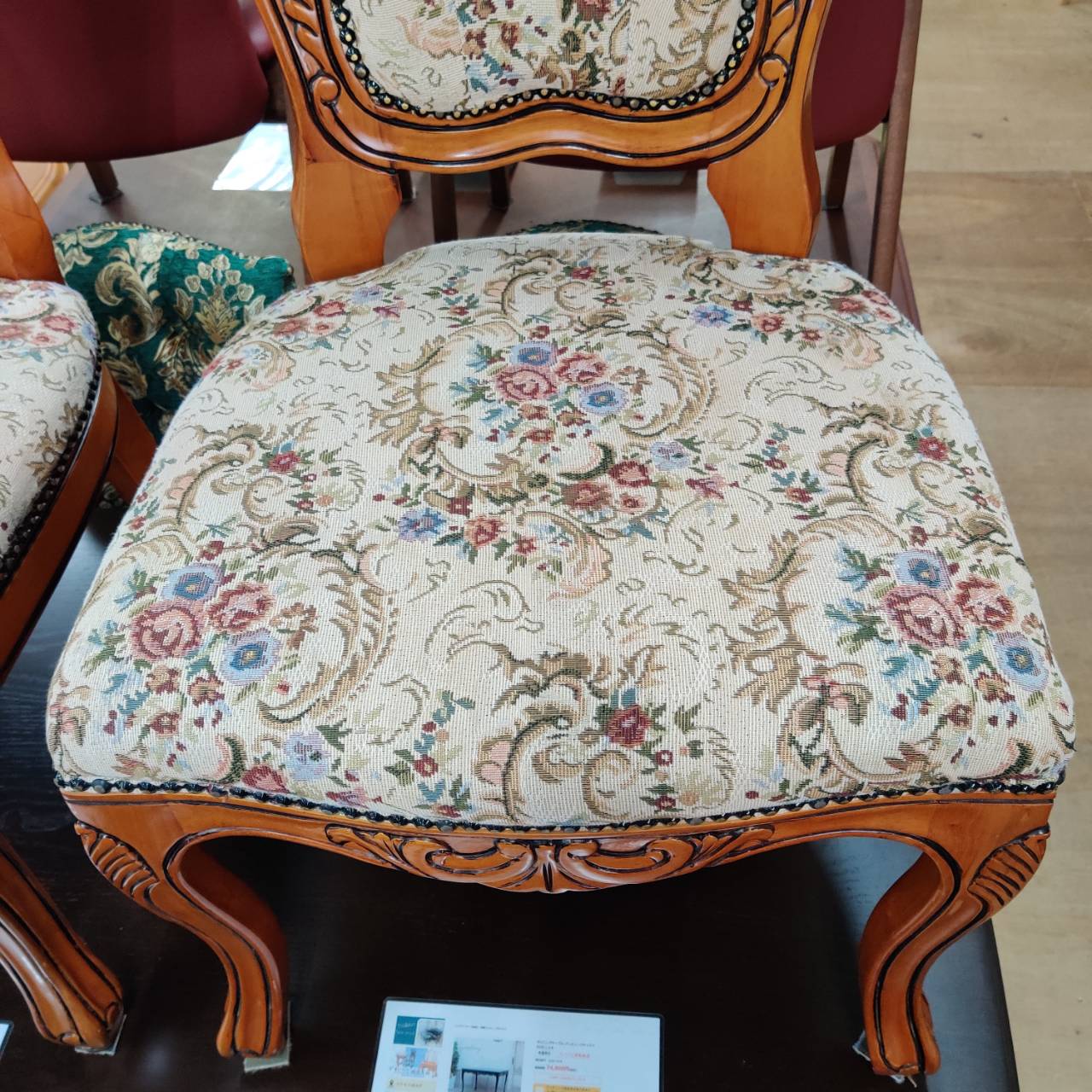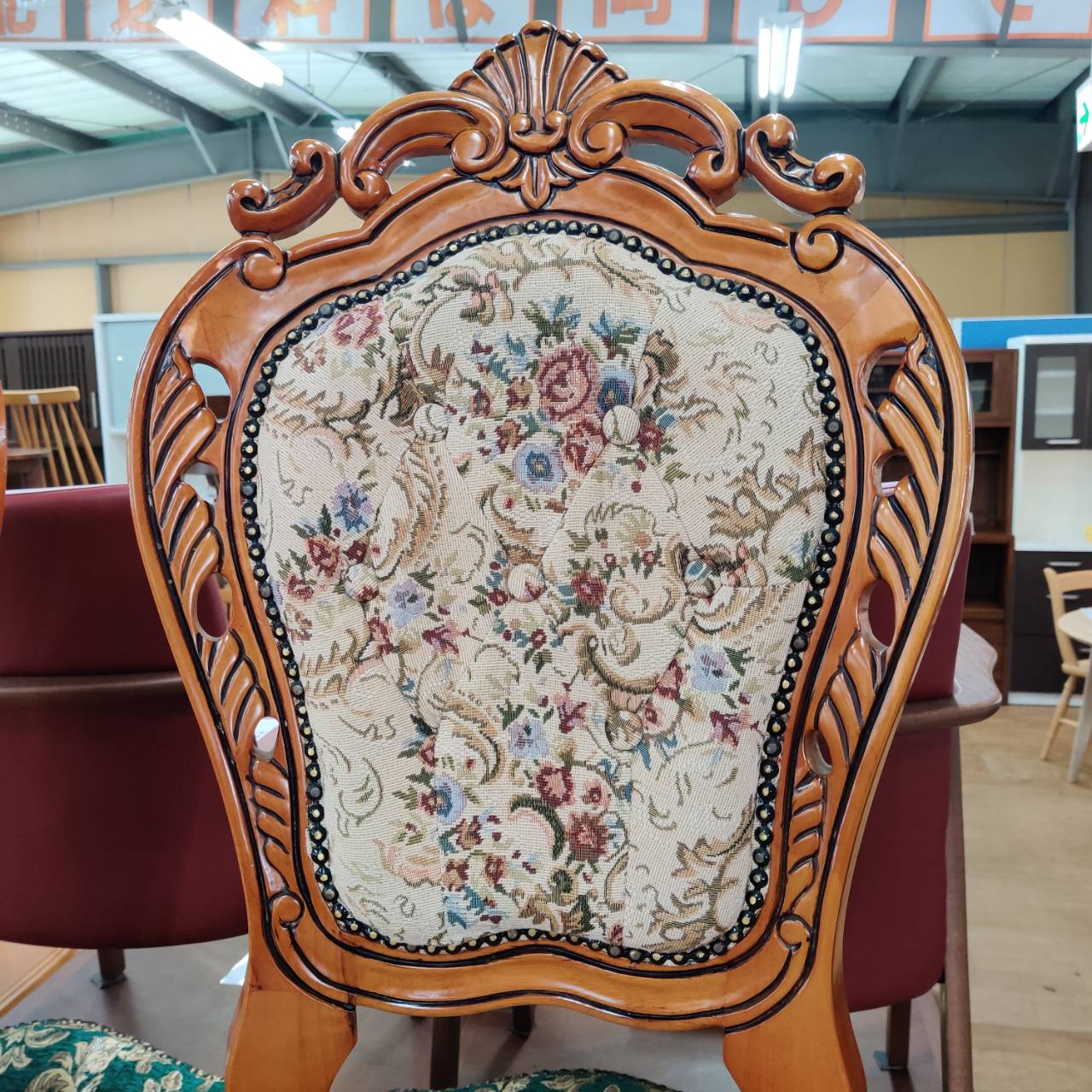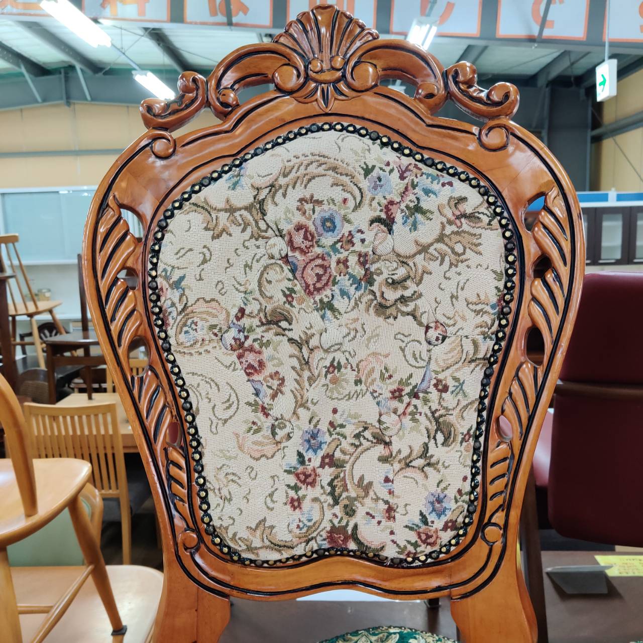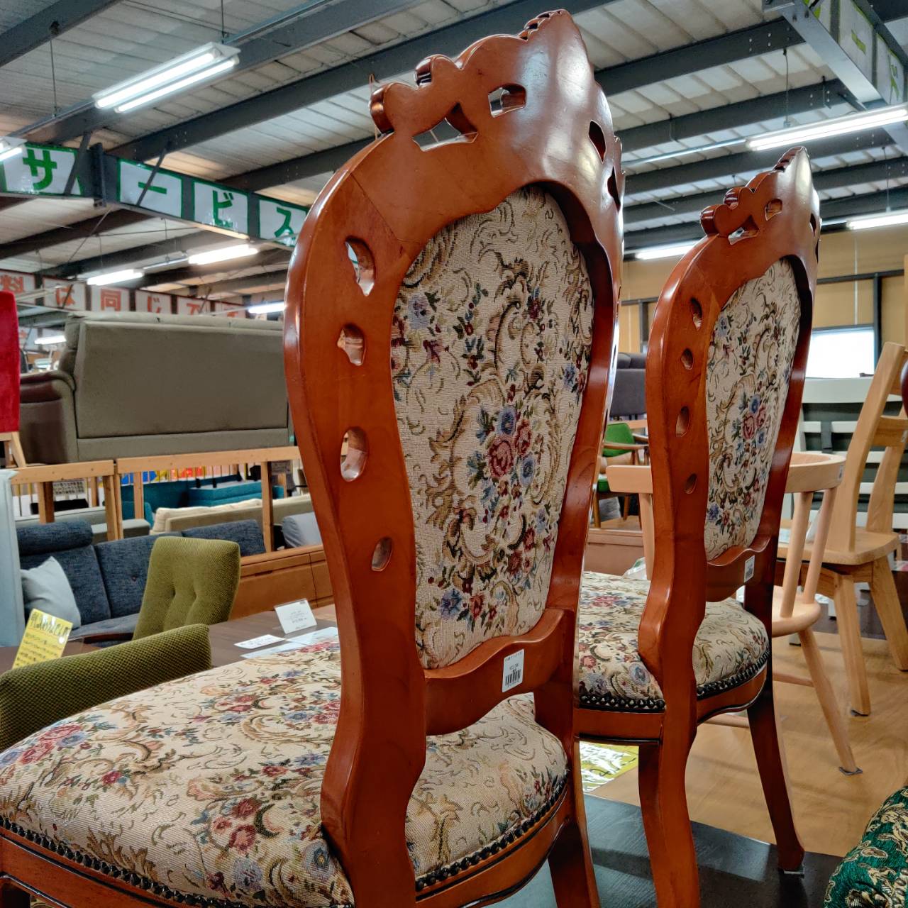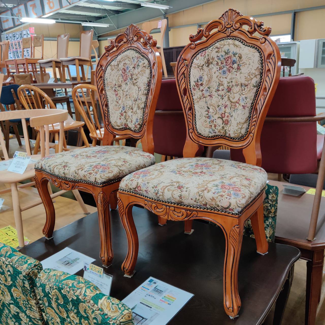 ロココ調の優雅なデザインが目を引くダイニングチェア2脚セットです。