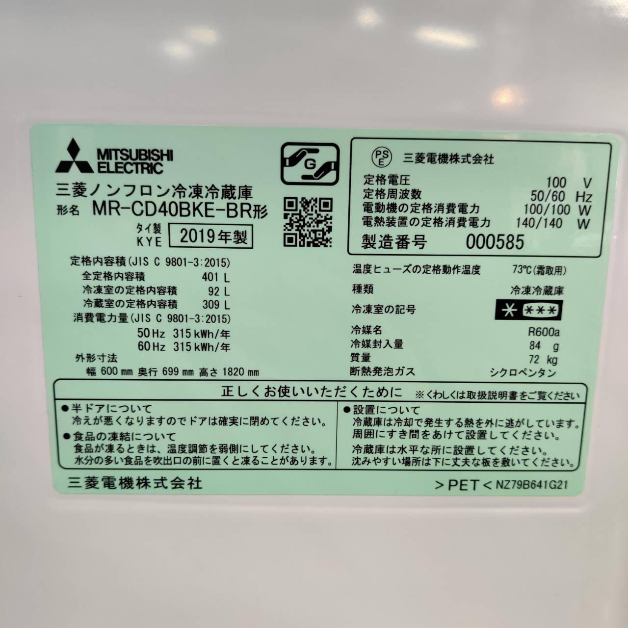 商品名 : 401L 3ドア 冷凍冷蔵庫
