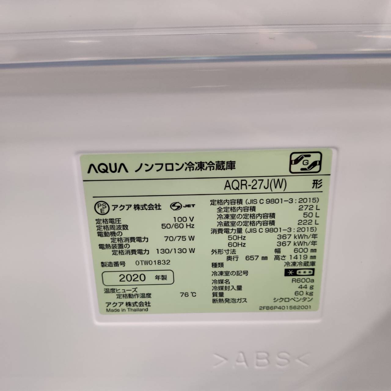 AQUA アクア 2020年製 272L 3ドア 冷凍冷蔵庫 AQR-27J 販売中! 愛品倶楽部柏店