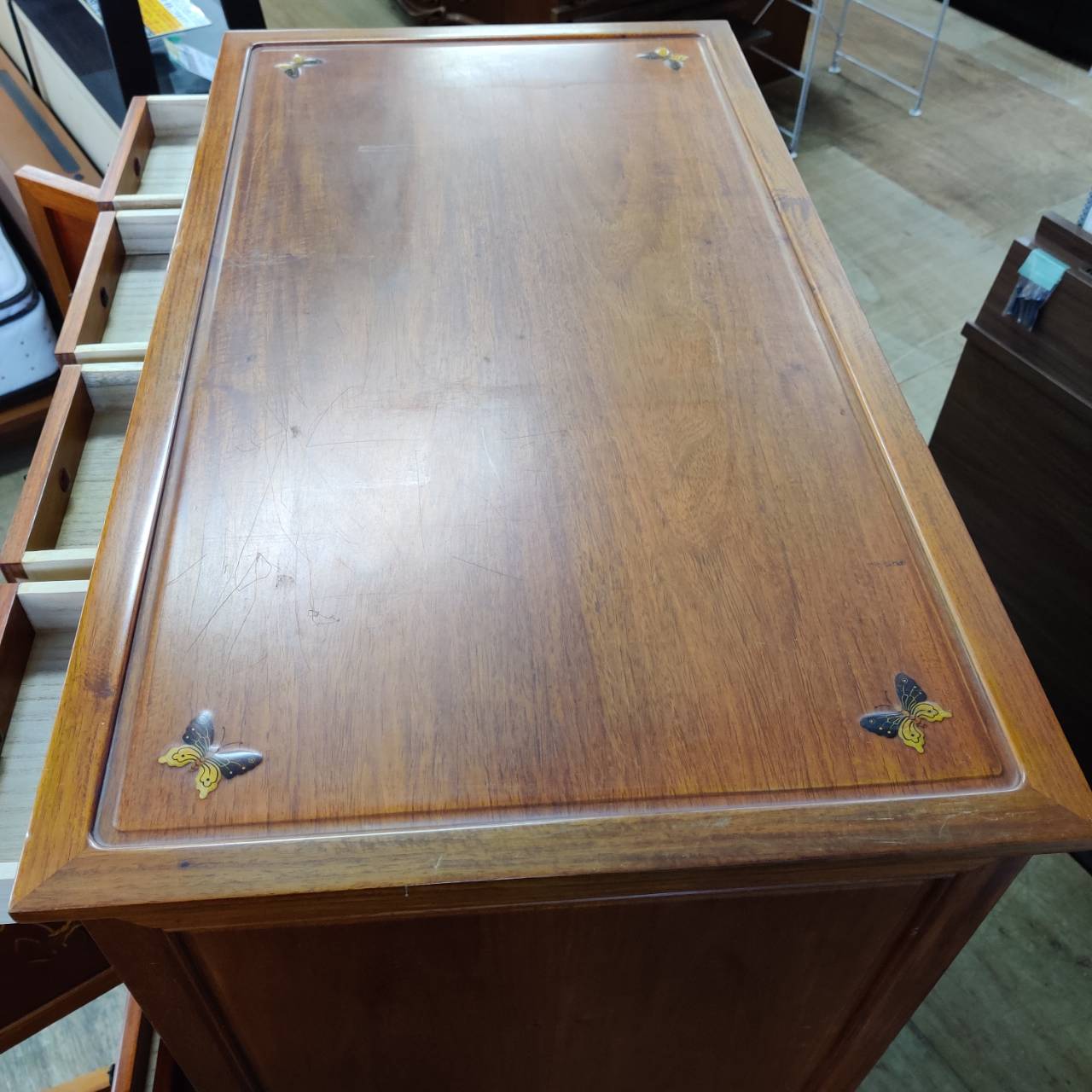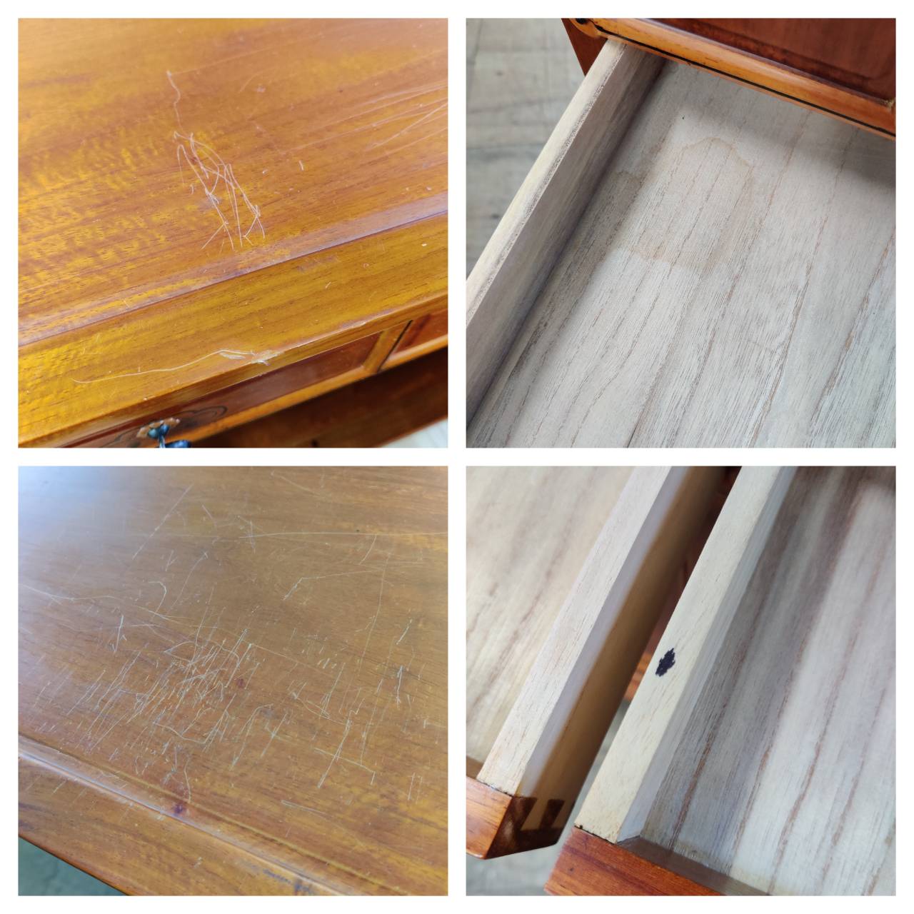 天板にスレキズ、引出し内に多少のシミ汚れ