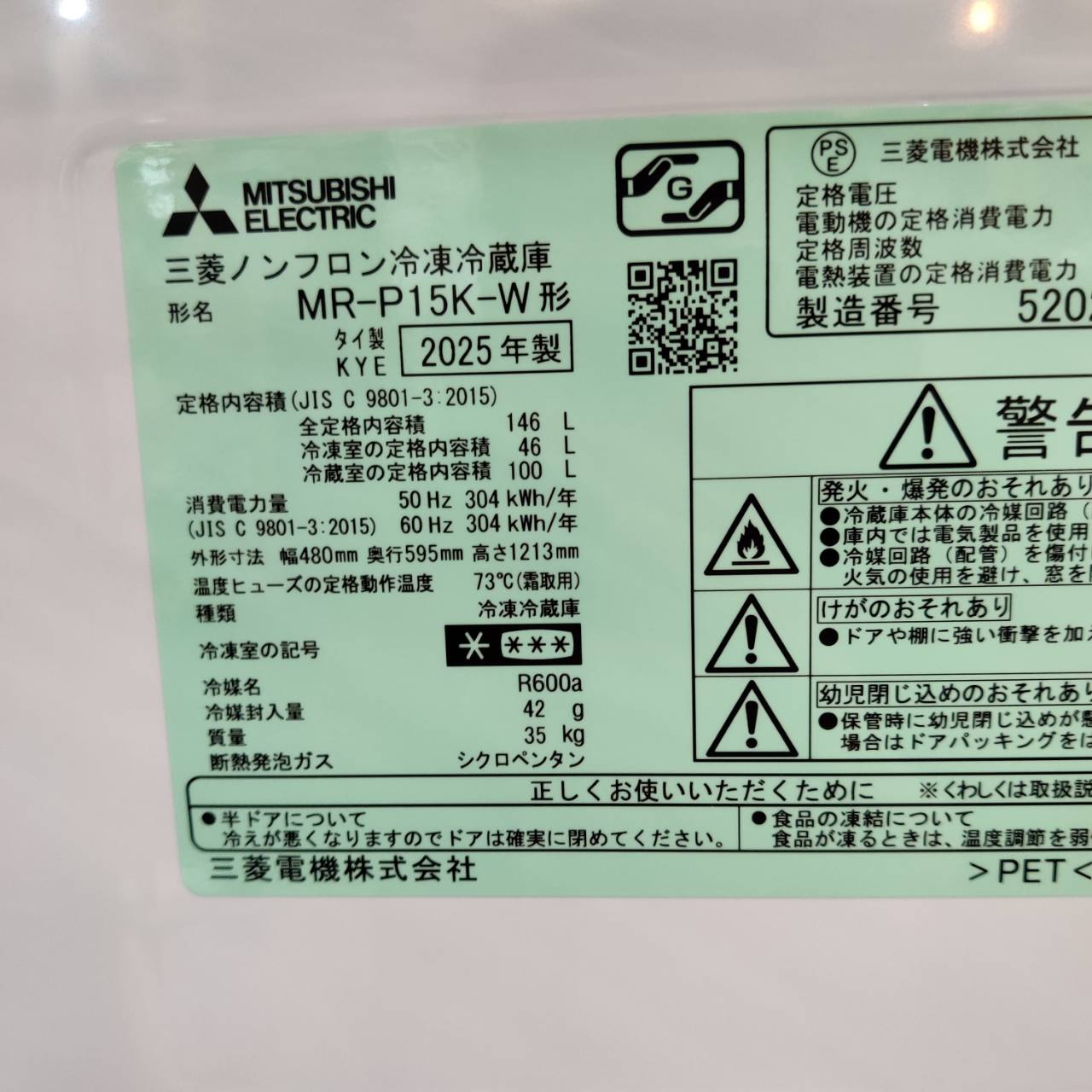 三菱-_2025年製_146L-2ドア-冷凍冷蔵庫_MR-P15K-W_143018533002-3