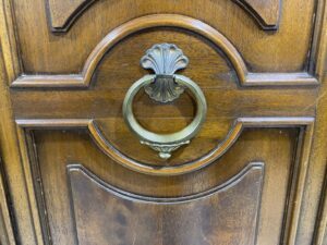 中央にあしらわれた真鍮のリングハンドルが、上品なアクセントを加え美しい木目と深みのある色合いが魅力のマホガニー材を贅沢に使用しています。