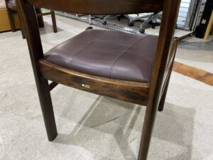 背もたれのフィット感があり安定感ある座り心地のダイニングチェアで、座面のレザーも素敵な印象のデザインです。