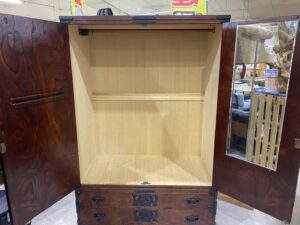 扉内には鏡とハンガー、下部には2杯の引出しがあり着物などの収納に活躍してくれます。
