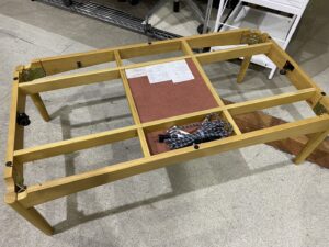 天板の上げ下ろしや安全性が考えられ、天板の四隅と脚の間に隙間が作られるなど機能性に優れたお品。