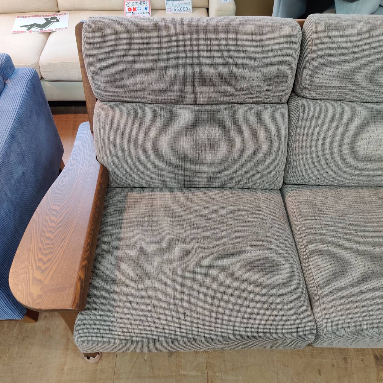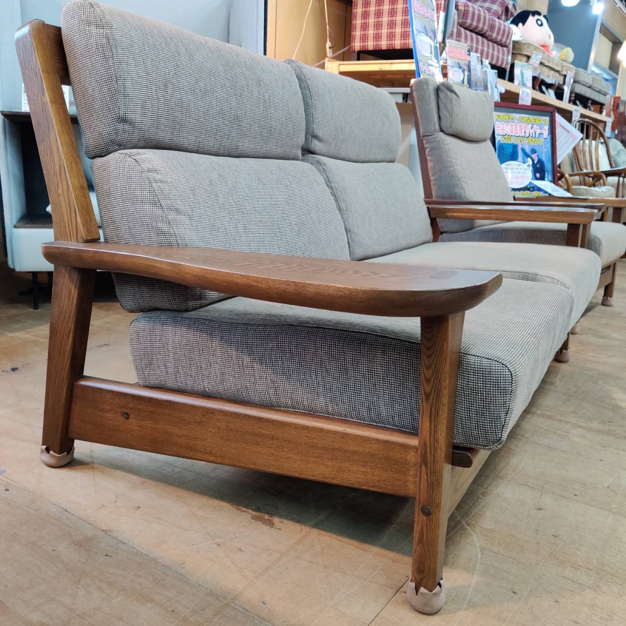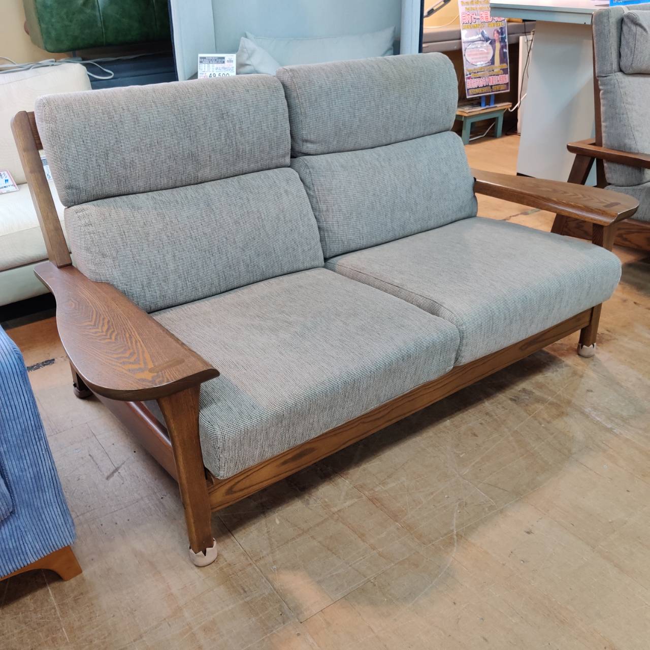 商品名 : 木製フレーム アーム付き2人掛けソファ