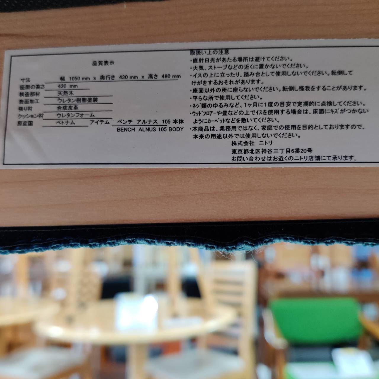 ・ベンチ(ニトリ アルナス):16,000円