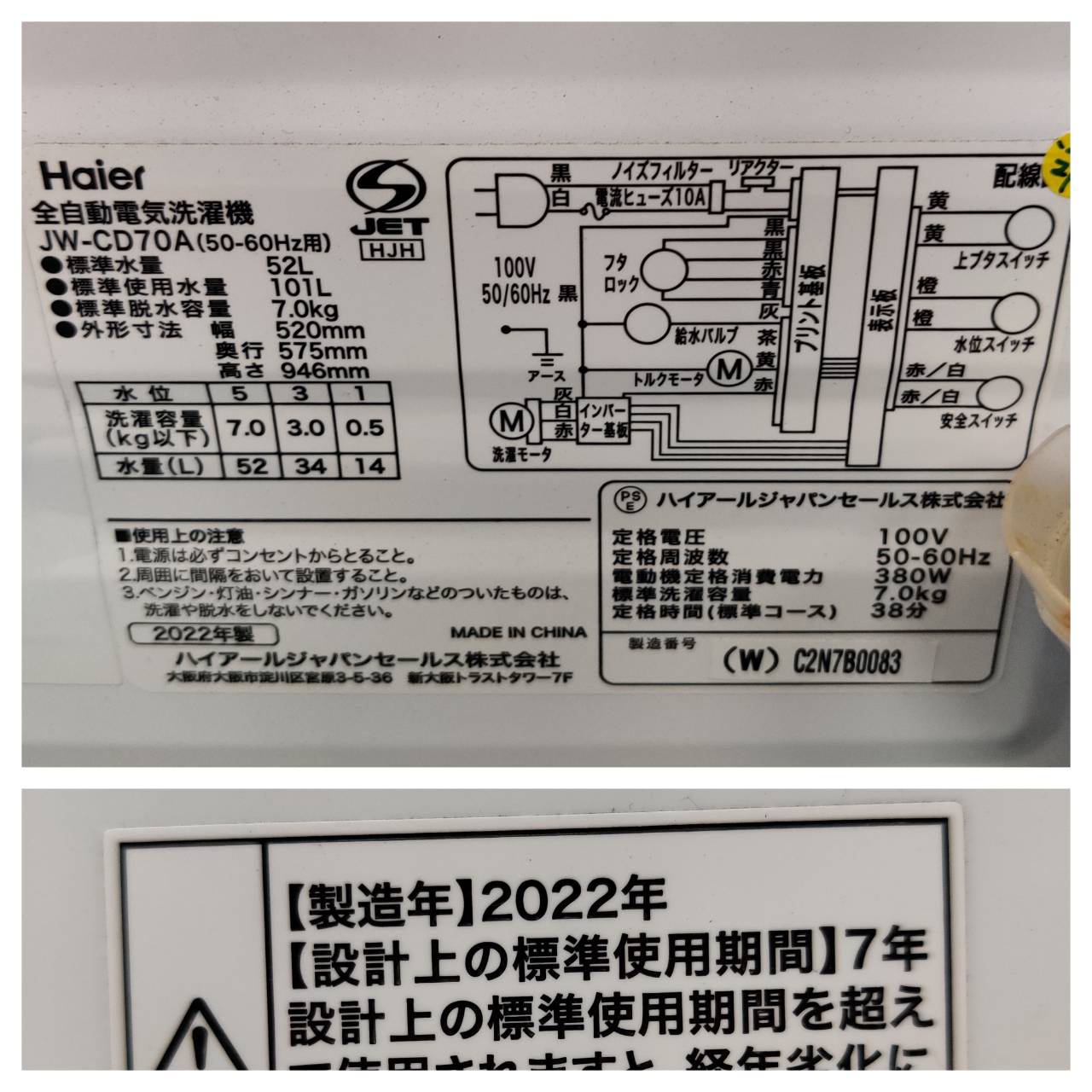 Haier ハイアール 7.0kg 22年製 全自動洗濯機 JW-CD70A インバーター搭載 静音設計 が入荷!愛品倶楽部 柏店
