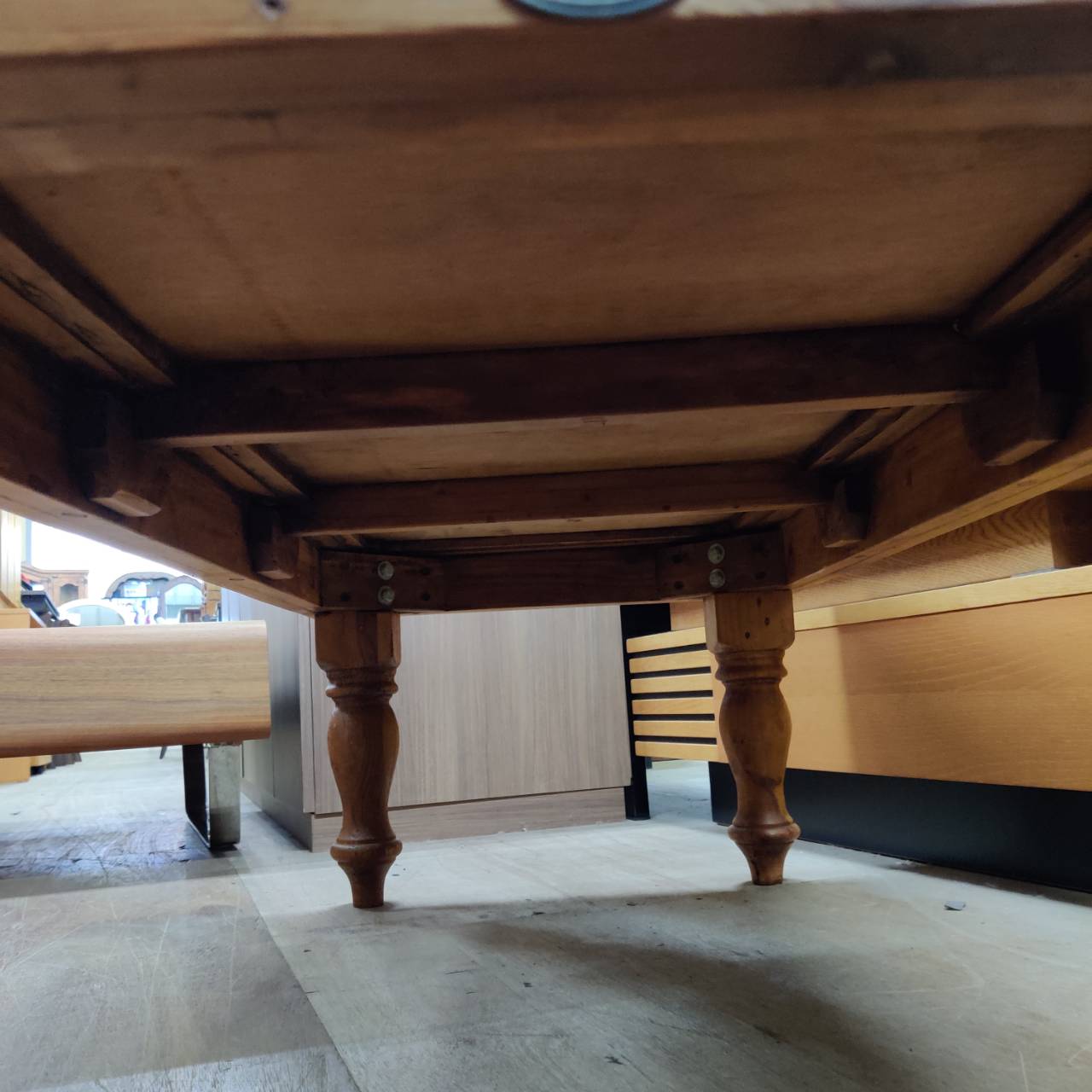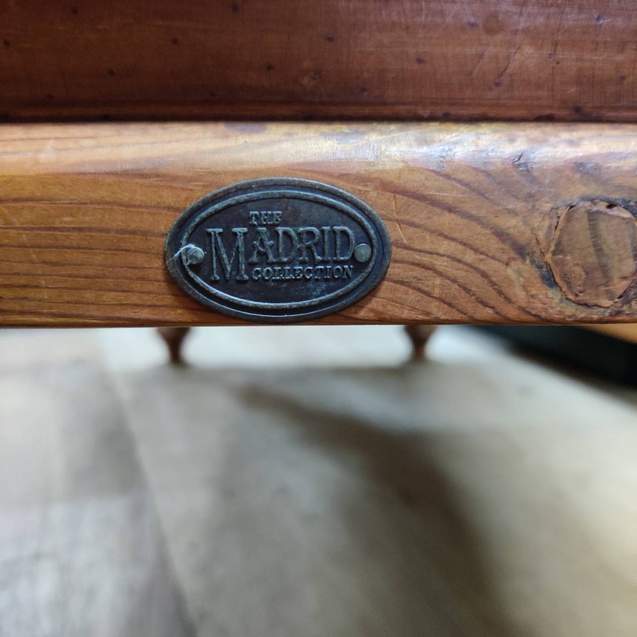 【マドリッドコレクションについて】 このシリーズの一番の良さは、新品の木材をわざと古く見せる「アンティーク加工」ではなく、本物の「古材(リサイクルパイン)」を使っているところ。 もともとは建材やパレットとして活躍していた木材を再利用しているので、最初から刻まれている傷や釘跡が、フェイクには出せない圧倒的な「深み」として宿っているんです。 この太くてどっしりとした脚、通称「ターンドレッグ(ロクロ脚)」が、カントリー家具好きにはたまらない意匠なんです。 古材の荒々しさと、この装飾的な脚の曲線美が組み合わさることで、ただの「古い机」ではなく、上品な「ヴィンテージ家具」としての品格が生まれているんですよ。 |