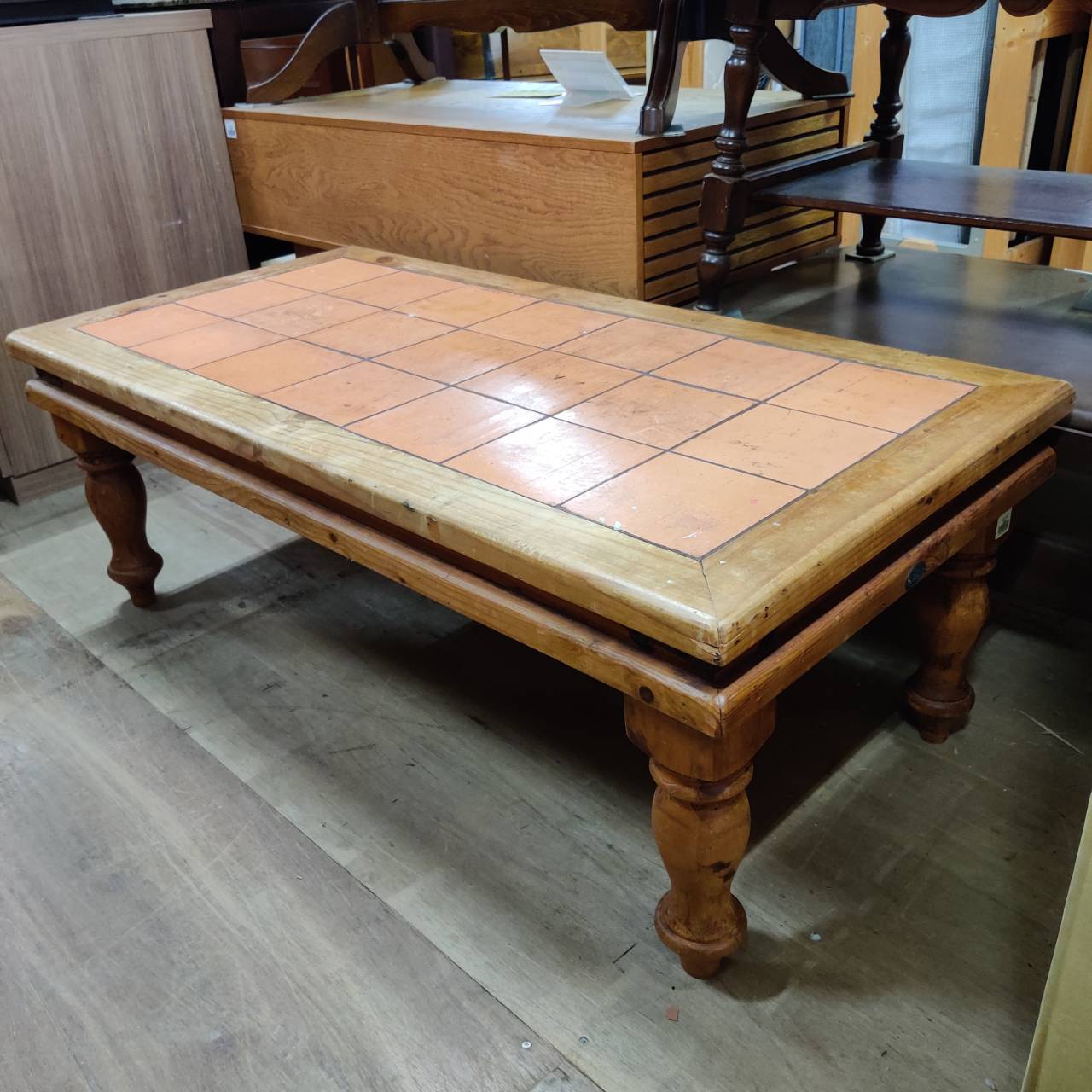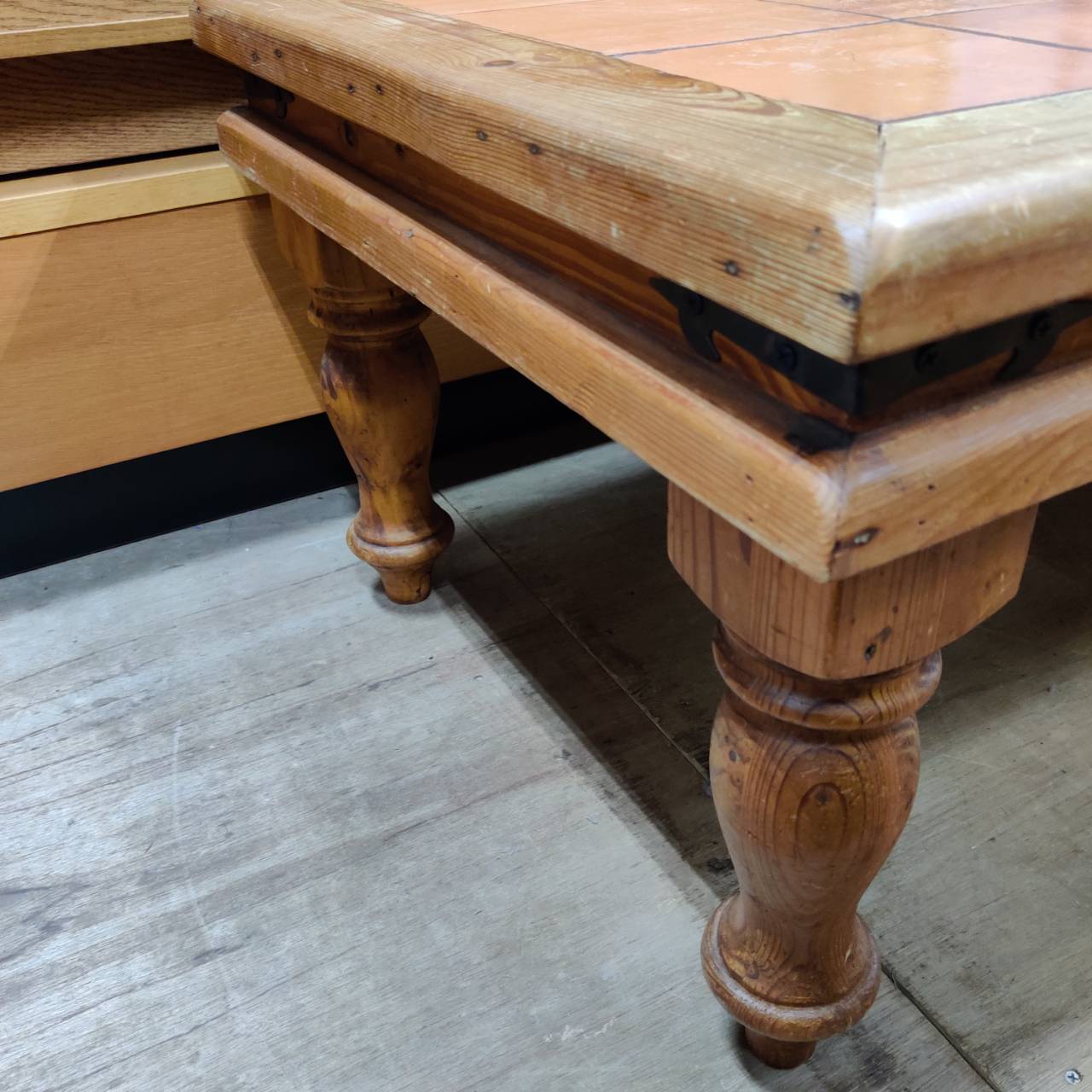 見てください、この使い込まれたパイン古材のいい味!マドリッドコレクションのテーブルは、梱包材やパレットを再利用して作られているから、最初から「育った」感じがあって素敵ですよね。天板のテラコッタタイルは、マグカップを置いた時の音がなんだか優しくて、ついついコーヒータイムが長くなっちゃいそう。存在感のある大きなロクロ脚も、お部屋のアクセントにぴったり。傷やヒビさえも「歴史」として愛せる、そんな懐の深い一台です。ソファの前に置くだけで、お部屋がパッと明るいカントリー調になりますよ。一点物のようなこの表情、ぜひ実際に見て触って、この子の個性を感じてみてくださいね。