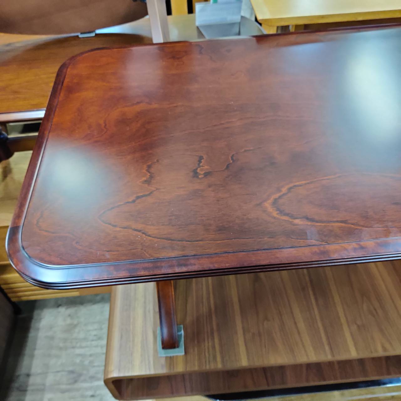 天板の木目の美しさと、それを引き立てるウレタン塗装の艶が、お部屋の格をぐっと引き上げてくれそう。