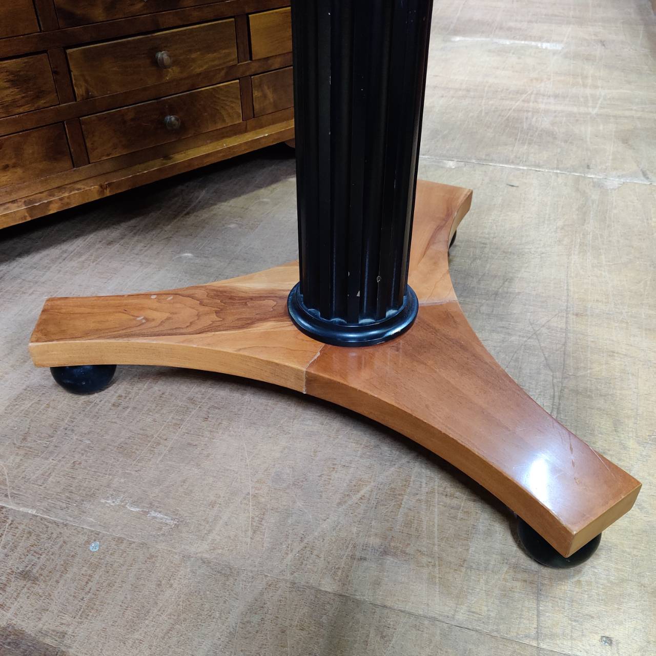 重厚なブラックの柱脚が全体をピリッと引き締めていて、クラシックな中にも洗練された雰囲気を感じます。