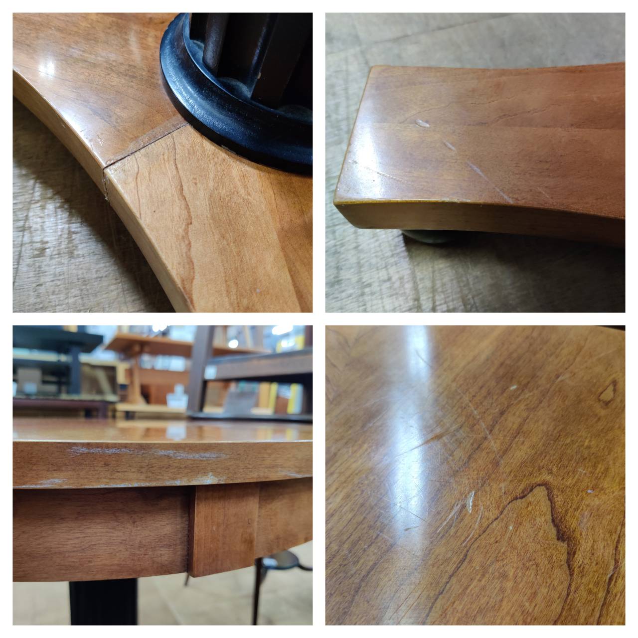 脚部に補修跡や天板に小キズはありますが、大切に使い込まれてきた家具特有の温かみがあります。