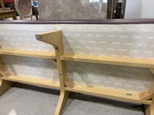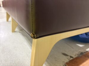 背と座をつなぐ脚部はホワイトアッシュの積層合板で、美しい積層面がデザインのアクセントになっています。