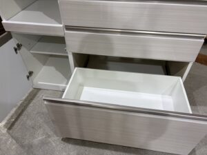 1・2段目のレールは、押すだけで閉まるので、次の作業にすぐに取り掛かれ、またゆっくり閉まるので中の物に衝撃が掛かりにくいです。