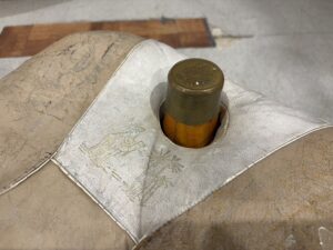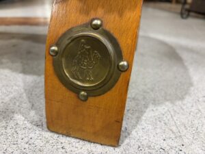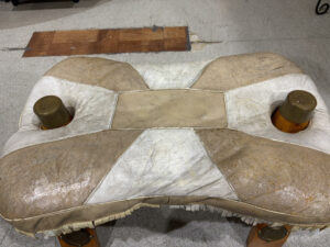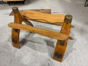 真鍮の装飾が施されたラクダの鞍型スツール(フットスツール)です。