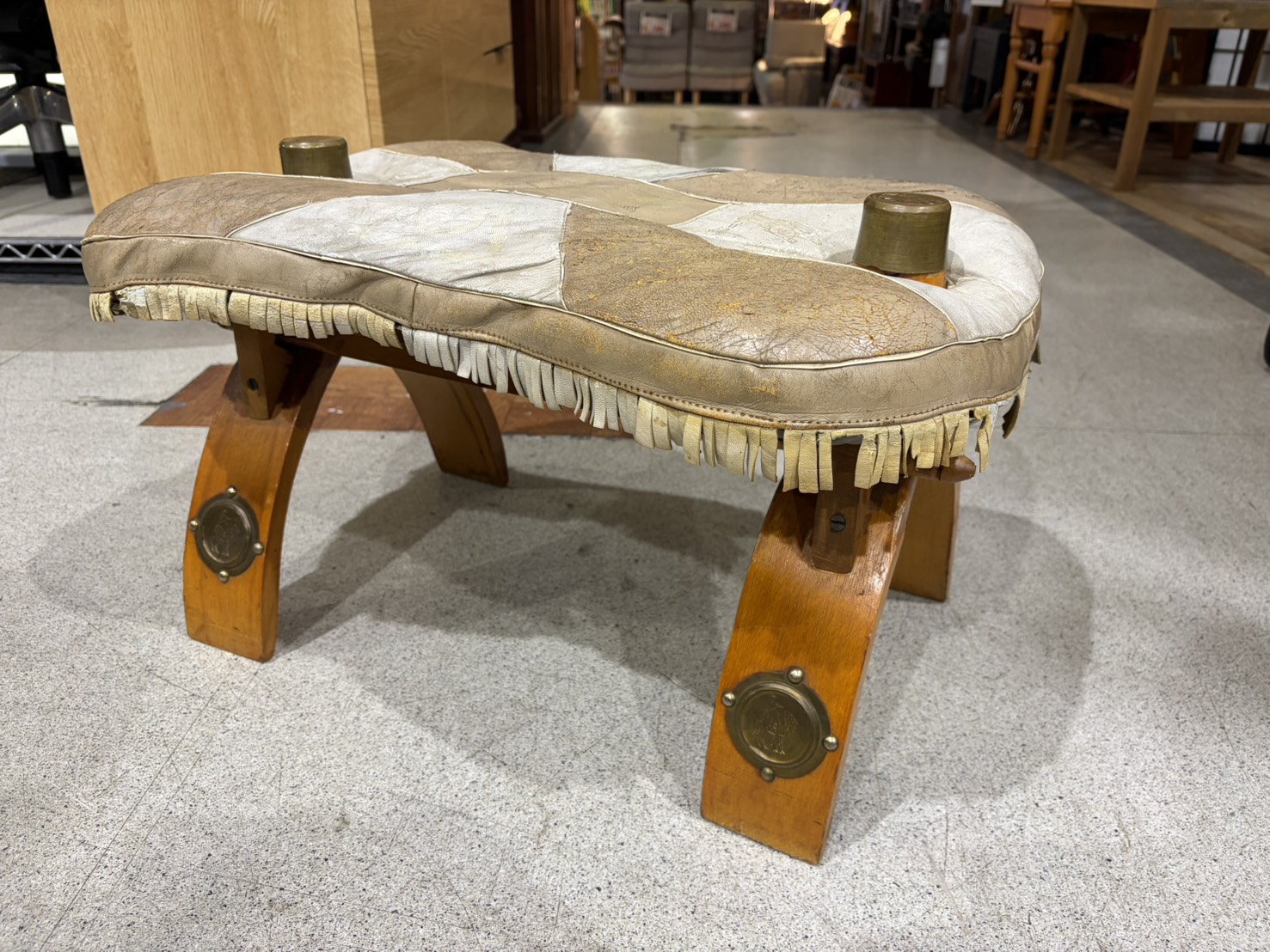 真鍮の装飾が施されたラクダの鞍型スツール(フットスツール)です。