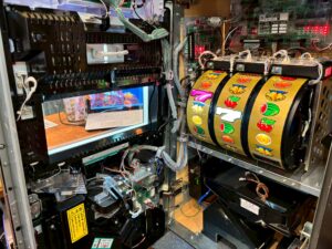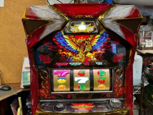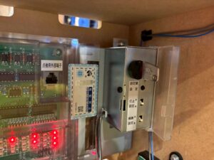 コイン不要機、家庭用電源変更済、ドアキー、設定キー付き。