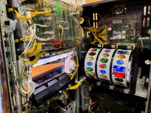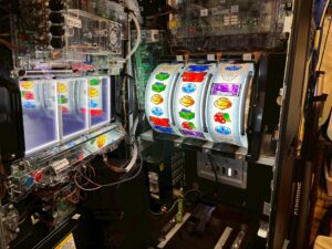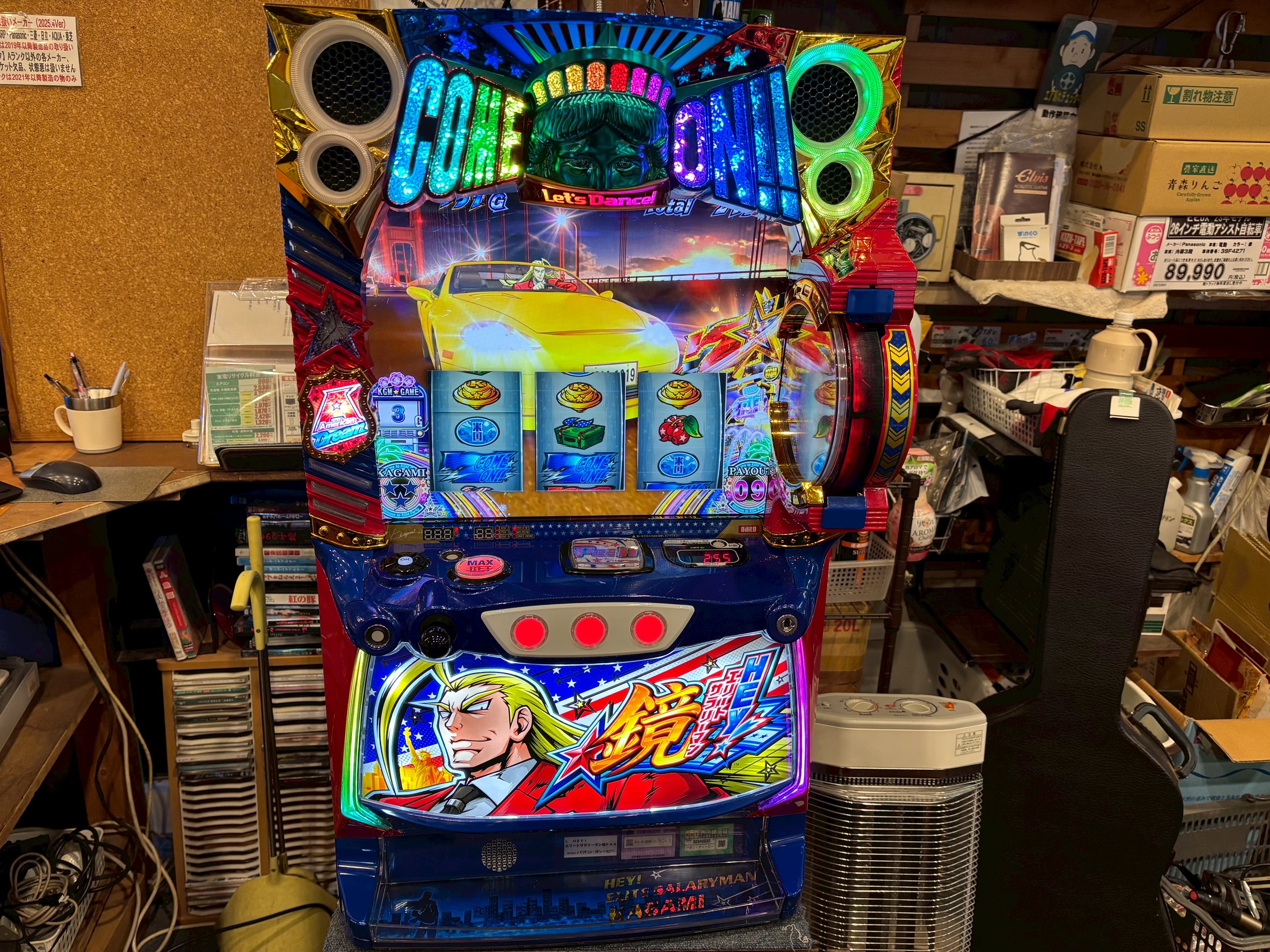 コイン不要機(オートベット切替)、音量調整ツマミ付、家庭用電源変更済、ドアキー、設定キー付