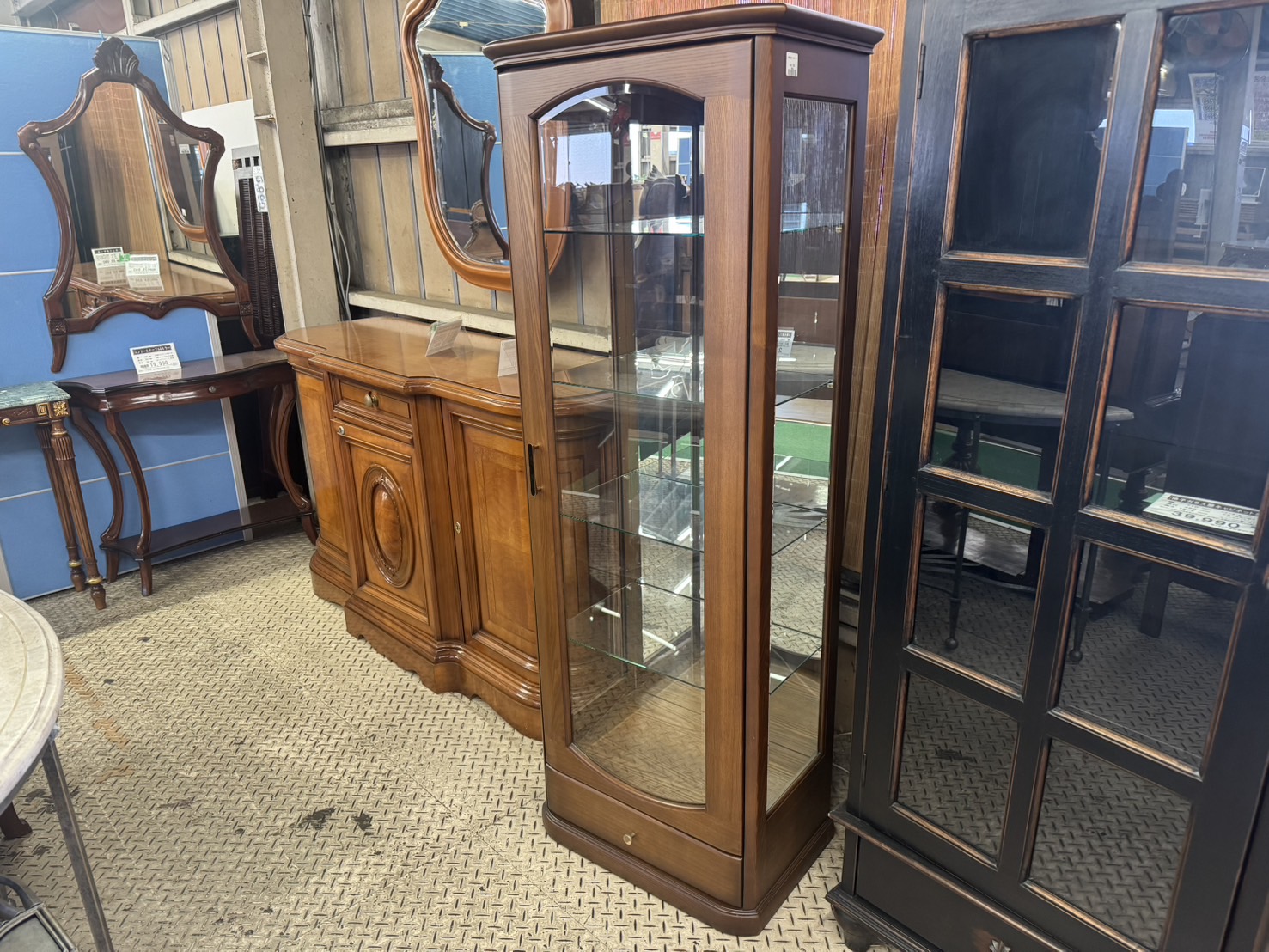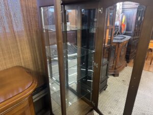 照明付きで3面ガラスと背板のミラーで飾られた品物は、華やかな雰囲気が演出出来ます。