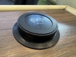 テーブル部分にはワイヤレス充電器、USBポート付き。